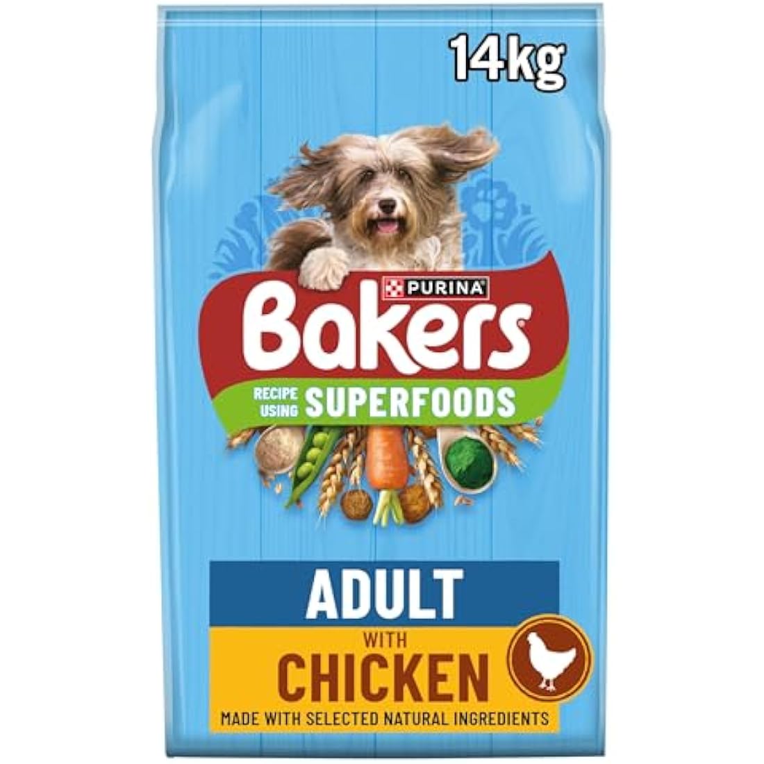 Bakers Adult Dry Dog Food Chicken and Veg 14 kg, Packaging May Vary