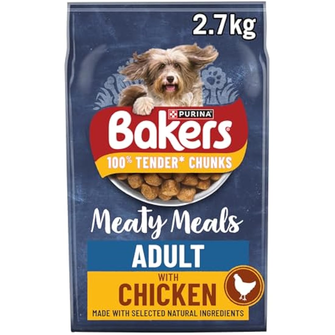 Bakers Meaty Meals Adult Dry Dog Food Chicken 2.7kg, Pack of 4