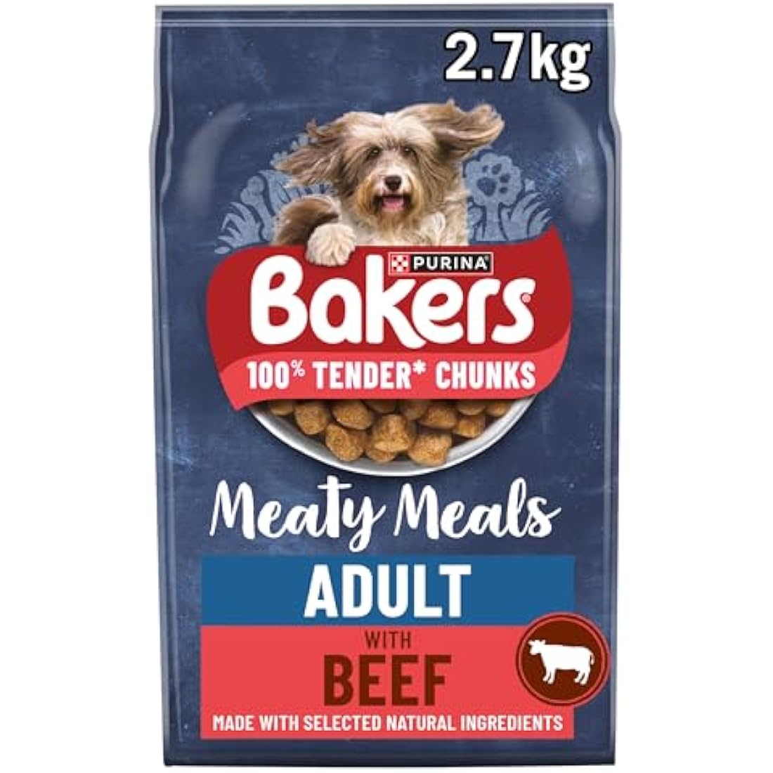 Bakers Meaty Meals Adult Dry Dog Food Beef 2.7kg, Pack of 4